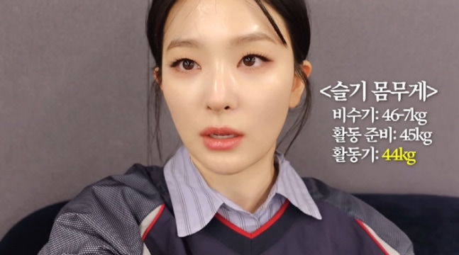 비수기 때 몸무게가 46kg, 활동기에는 44kg까지 감량한다는 슬기는 "지금은 45kg 초반이다. 여기서 체지방이 조금만 더 빠지면 라인이 조금 더 살 것 같다"고 했다.