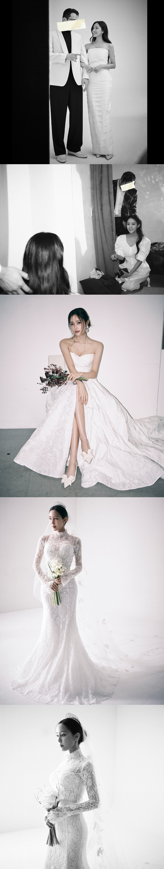 공개한 사진엔 순백의 드레스를 입은 효민이 예비 신랑과 다정하게 포즈를 취하는 모습이 담겼다. 특히 그는 예비 신랑을 향해 연신 함박웃음을 보이며 벌써부터 '사랑꾼 아내'의 면모를 엿보게 했다. 효민 남편은 훤칠한 키와 넓은 어깨를 드러내며, 얼굴을 가렸음에도 훈훈한 자태를 뽐냈다.