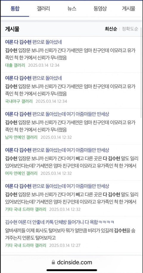 가세연에서만 받아줘서 갔다? 터무니없는 거짓망상을 기사화 하기 싫었던게 아닐까? 이모라는사람 정체는 뭘까? 연기자? 진짜지인? 쨋든 나와서 한 말이 근거가 뒷받침되는 말이 있긴 했나? 김수현도 만났었다던데 어디서 어떻게 무었때매 만나서 뭘하고 무슨얘길 했음?ㅋ 김새론엄마가 시켰는지 이모라는 사람이 대충듣고 말한건지 가세연이 대본을 준 건지 모르겠지만, 증거나 근거가 없이 김수현을 악마화 하기 위해 자극적으로 교묘하게 20%사실에 80%거짓과 부풀림으로 내보냈다 이거임ㅋ