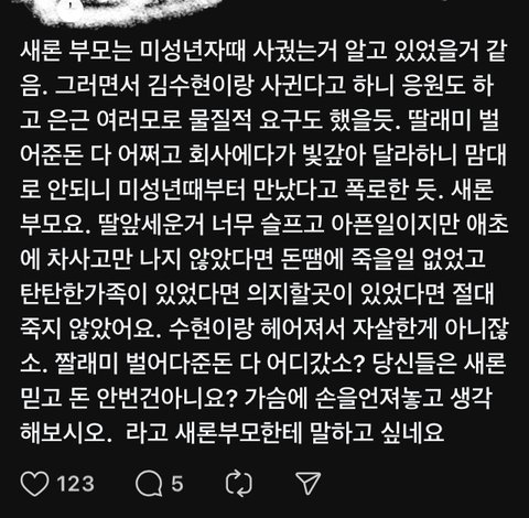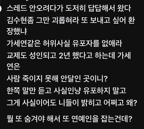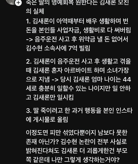 내일 모레 30인 놈이 중딩 여학생이랑 교제하고, 무급으로 착취할 때 김수현 부모는 뭐했는데? 피해자측 비난하기 전에 가해자를 더 패야지 뭐 하는 거세요?