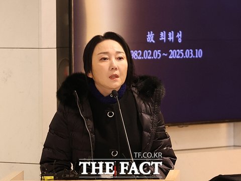 故 휘성의 영결식이 16일 오전 서울 강남구 삼성서울병원 장례식장에서 엄수된 가운데 배우 김나운이 참석해 추도사를 하고 있다.