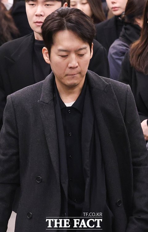 故 휘성의 발인이 16일 오전 서울 강남구 삼성서울병원의 장례식장에서 엄수된 가운데 가수 하동균이 이동하고 있다.