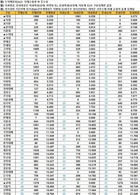 2025 입결기준 최신대학순위 top50이래요 ㄷㄷ jpg