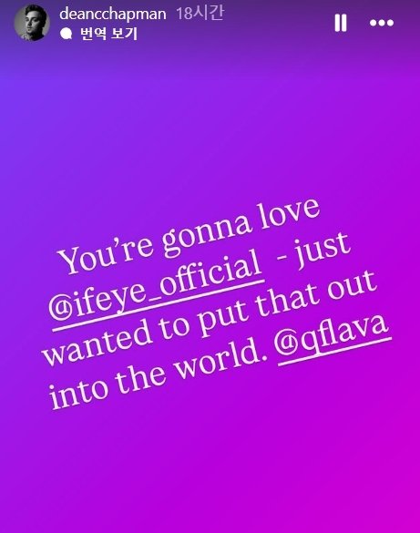 할리우드 배우 딘찰스 채프먼이 곧 데뷔를 앞둔 국내 걸그룹 이프아이(ifeye)에 대한 팬심을 드러냈다. 딘찰스 채프먼은 지난 12일 자신의 인스타그램 스토리를 통해 걸그룹 이프아이 계정을 태그한 뒤 “정말 좋아하게 될 것”이라며 “그냥 세상에 알리고 싶었다”고 적었다.