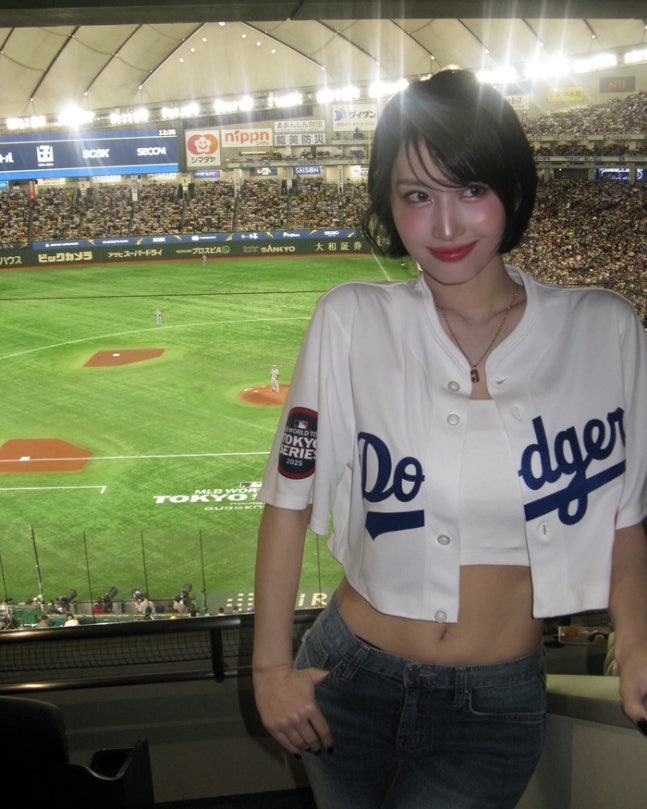 공개된 사진 속에는 트와이스 모모, 사나, 미나가 LA 다저스와 한신 타이거스의 시범경기에서 포즈를 취하고 있는 모습이 담겨있다.