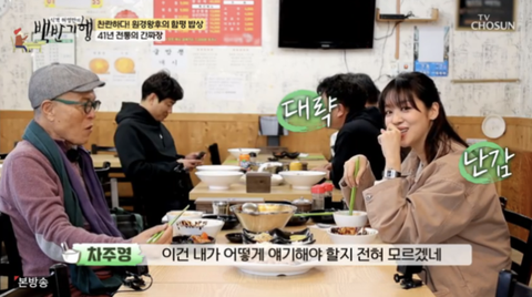 차주영은 16일 방송된 TV조선 ‘식객 허영만의 백반기행’(이하 ‘백반기행’)에 게스트로 출연해 허영만이 “송혜교 배우와 같이 연기하더니 많이 닮았다는 생각이 든다”고 운을 떼자 “그래요? 아니에요”라고 놀라워 했다.