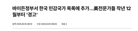 바이든정부서 한국 민감국가 목록에 추가...美전문가들 작년 12월부터 '경고' < 국제 < 기사본문 - 프리진뉴스