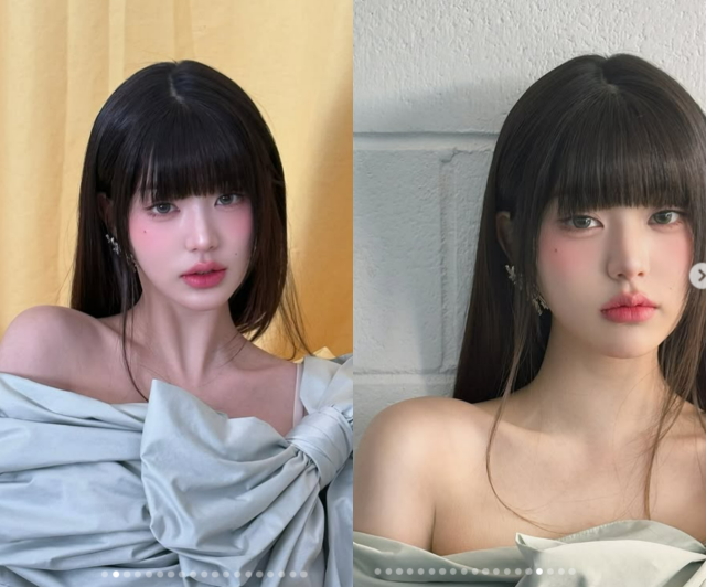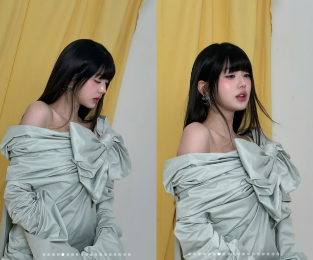 사진 속 장원영은 한쪽 어깨를 드러낸 풍성한 소재의 드레스를 입고 다양한 포즈를 취했다. 앞머리를 빼곡히 내린 장원영은 인형보다 더 인형 같은 미모를 선보였다.