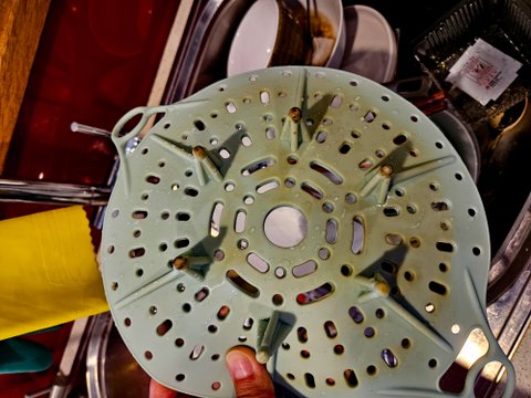 며칠 전에 만두를 찌다가 솥 바닥이 새까맣게 탈 정도로 태워버렸어요. 그런데 이 실리콘 찜기를 계속 써야 할까요?