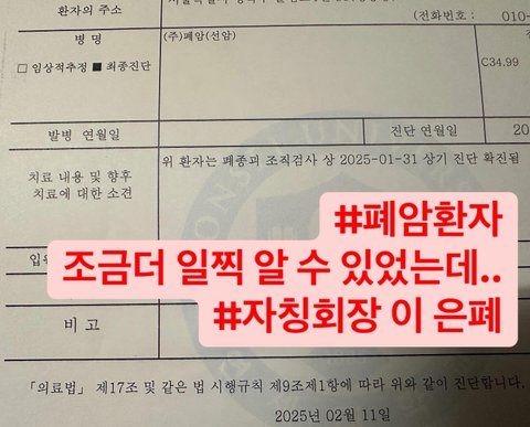 밝혀진 사실로는 제 폐암은 2022년 무렵부터 있었습니다.