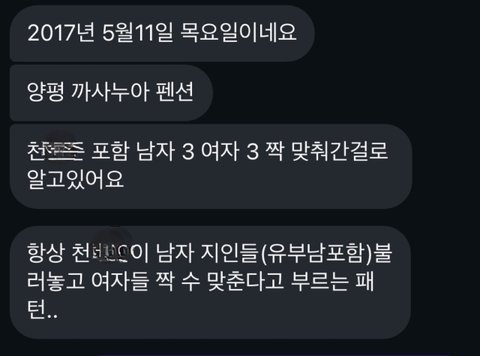 그리고 그 화려한 SNS 활동을 통해 결혼생활 동안 여러 이성들과 꾸준히 DM을 주고받고 불륜은 물론, 돈과 이득을 챙기기 위해 지인 유부남과의 알선을 주도하였습니다.