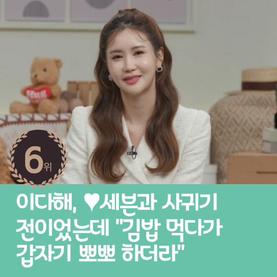 6위 : 이다해, ♥세븐과 사귀기 전이었는데 "김밥 먹다가 갑자기 뽀뽀 하더라"