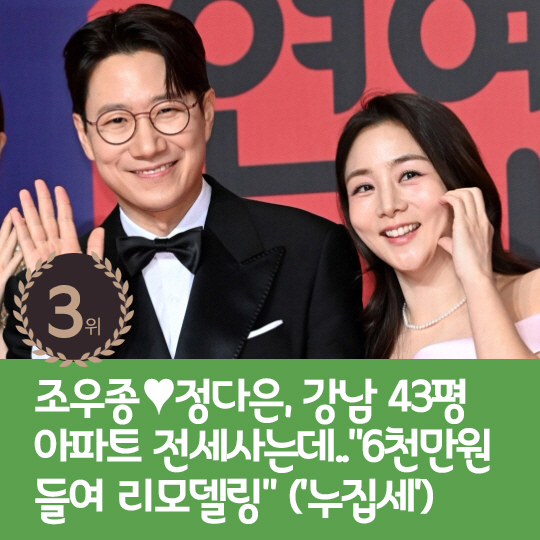 3위 : 조우종♥정다은, 강남 43평 아파트 전세사는데.."6천만원 들여 리모델링" ('누집세')
