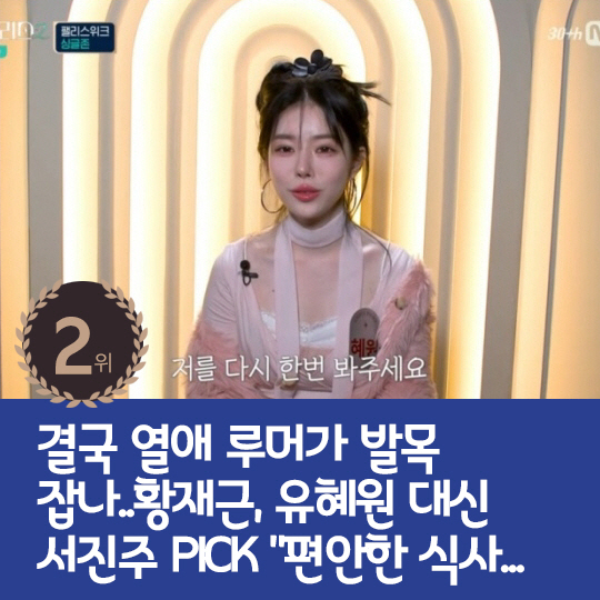 2위 : 결국 열애 루머가 발목 잡나..황재근, 유혜원 대신 서진주 PICK "편안한 식사 하고 싶어"