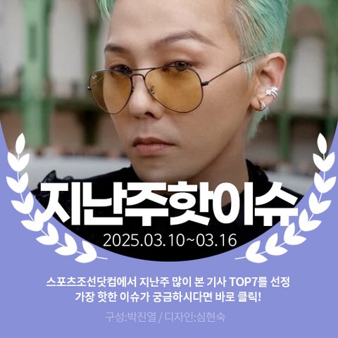 지난주에는 지드래곤이 '굿데이' 하차선언을 했다는 기사가 가장 큰 인기를 얻었습니다. 지난 9일 방송된 MBC '굿데이'에서는 음악 프로젝트를 성공시키기 위해 열을 올리는 지드래곤의 모습이 그려졌는데 이날 지드래곤은 정형돈, 데프콘과 두 달 만에 재회했습니다. 지드래곤은 정형돈과 데프콘이 근황 토크를 나누고 있는 사이 몰래 다가가 정형돈에게 기습 백허그를 했고 최근 21kg를 감량한 정형돈에게 "형 요즘 예뻐졌다는 소문이 자자하더라. 지금까지 본 모습 중 제일 연예인 같다"고 칭찬했다고 하네요. 지드래곤은 프로젝트 완성을 35일 앞두고 "오랜만에 반가운 얼굴들을 만나며 큰 선물을 얻은 느낌이다. 제일 중요한 곡을 만들어야 하는데 아직이다. (사람들과) 만나기 전에는 웅장하고 힘있는 노래를 생각했는데 곡의 방향을 섣불리 생각했다. 너무 정형화된 그림을 생각했다. 참여하는 분들을 만나 많은 영감을 얻었기 때문에 작업했던 리스트는 지워버리고 단체곡 방향성을 다시 잡기로 했다"고 고백했습니다.