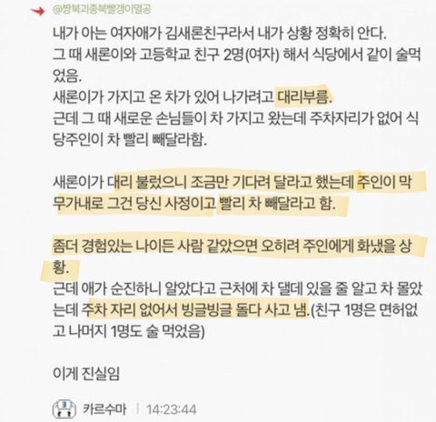 식당 주인의 황당한 주장에 거절 못하고 운전대 잡은건가