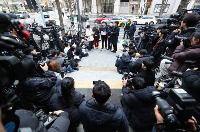 ▲ 권영찬(왼쪽)과 고 김새론 유족 측 부지석 변호사. ⓒ연합뉴스부지석 변호사는 김수현 및 소속사 골드메달리스트에대해서도 언급했다. 부 변호사는 "사실 유족 측은이진호를 허위사실로 고소를 진행하기 위해 교제 사실을 인정받아야 했기에 김수현 측이 교제 사실을 인정하길 바란 것 뿐이다. 다만 거짓된 입장문이 유족측을 더 힘들게 했고 지금이라도 진심어린 사과를 하길 바란다"고 말했다.