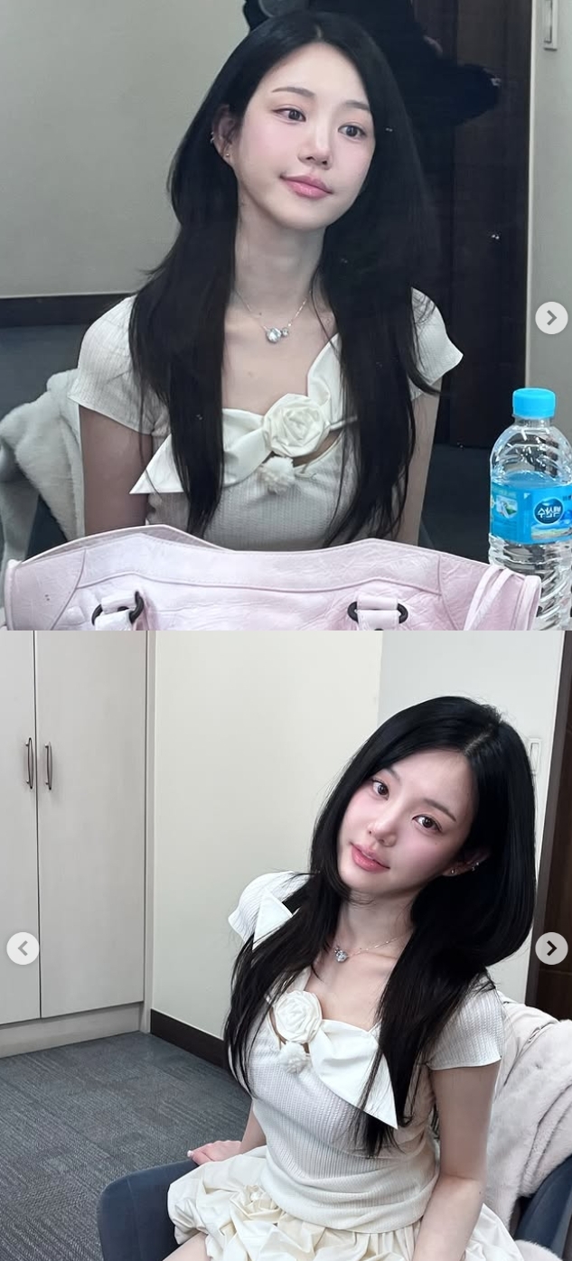 사진 속 이유비는 코사지가 달린 원피스를 입고 순백의 자태를 드러낸다. 이유비는 긴 생머리를 늘어뜨리고 공주 같은 비주얼을 자랑한다.