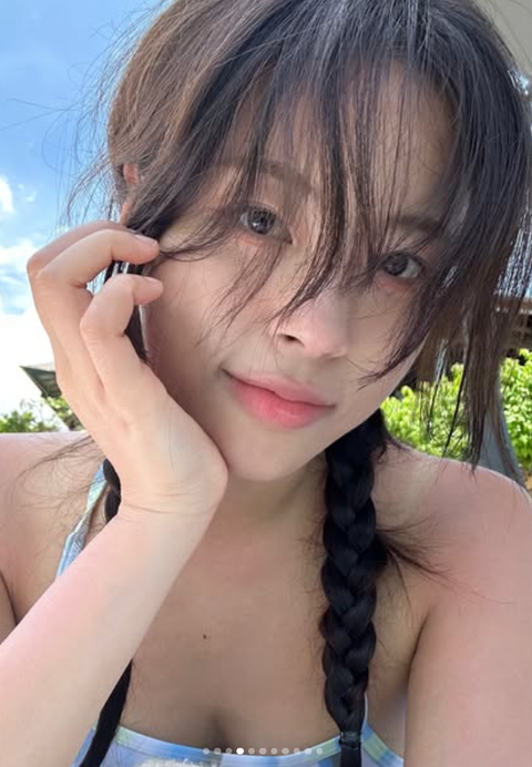 하늘색 수영복을 입고 머리에 스카프를 두른 그는 다양한 포즈를 취하며 귀여운 매력을 한껏 발산했다.