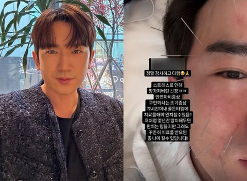 이민우는 17일 자신의 인스타그램 스토리를 통해 얼굴 한 쪽에 집중 침 치료를 받고 있는 사진을 공개했다.