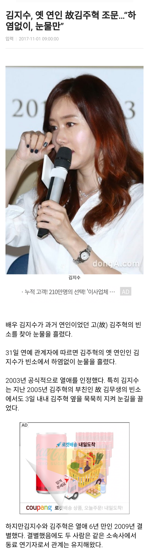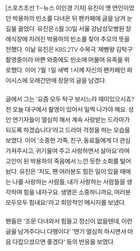 김지수는 6년 사귄 정땜에 3일을 장례식 조문을 다 갔고