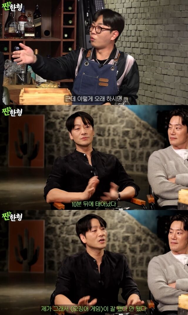 유튜브 채널 '짠한형 신동엽'/'짠한형 신동엽' 영상 캡처공개된 영상에서 정호철은 박해수에게 "형님 아들이 '오징어 보이' 아니냐"라고 이야기를 꺼냈다. 박해수는 "오, 맞다"며 "'오징어게임' 오픈되는 시간보다 10분 뒤에 태어났다. 오후 4시에 오픈했는데 딱 4시 10분엔가 태어났다"고 답했다.