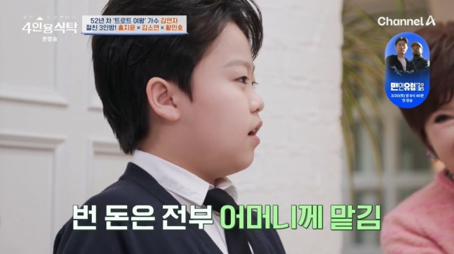 17일 방송된 채널A '절친 토큐멘터리 – 4인용식탁'은 가수 김연자 편으로 트로트 후배 홍지윤, 김소연, 황민호와 함께했다.