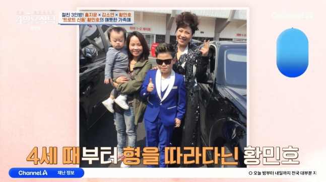 사진=채널A '4인용식탁'황민호는 "형이 리틀싸이 활동했을 때 내가 4살이었다. 형이 공연하면 나도 따라다녔지만, 형 무대를 안 봤다. '나도 잘할 수 있는데 왜 못 서나' 생각했다"고 솔직한 마음을 내비쳤다.