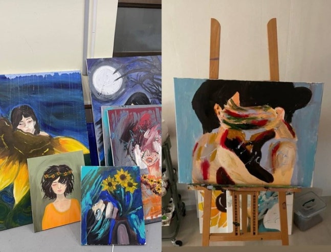공개된 그림 속에는 비를 맞고 있는 해바라기 소녀, 눈을 감은 소녀, 목에서 해바라기가 자란 그림, 얼굴을 맞대 섞인 듯한 남녀의 모습이 담겼다.