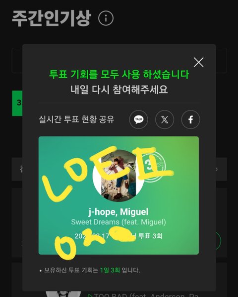 주간인기상도 해줘 지금 격차 벌려놔야됨