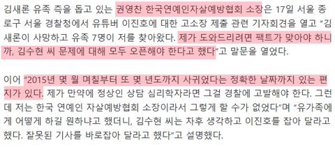 한국연예인자살예방협회 소장분께서 직접 확인하신듯 ...