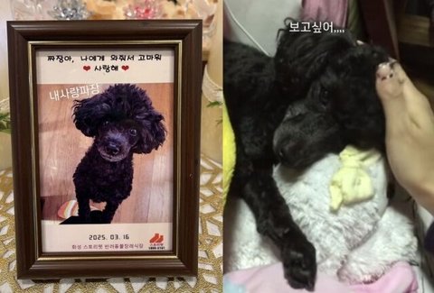 송해나는 17일 소셜미디어 스토리에 "내사랑 짜장, 보고싶어"라는 글과 함께 사진과 영상을 업로드했다.
