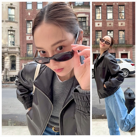 제시카는 이번 룩에서 포인트 아이템으로 작은 프레임의 블랙 선글라스를 착용해 한층 더 스타일리시한 느낌을 연출했다. 특히 사진 속에서 선글라스를 살짝 내리고 카메라를 응시하는 컷에서는 그녀 특유의 도도하면서도 장난기 어린 매력이 돋보인다.