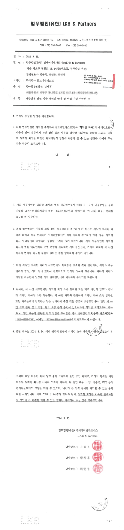 김수현 소속사 2차 입장문