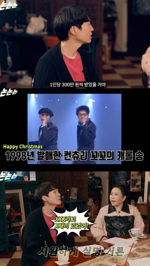 신정환은 "예전에 1998년에 캐롤 음반 냈는데 그게 10만장 이상 팔렸다. 방송에서 러브콜 오고 난리었다. 근데 소속사에서 몇 장 팔렸는지 얘기도 안 해줬다. 그러곤 나중에 봉투만 주더라. 방송도 많이하고 행사도 많이 했으니까 기대를 하고 갔다. 나오면서 봤더니 1인당 300만원이었던 거 같다"고 밝혔다.