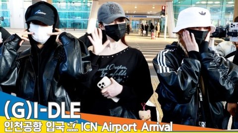 [인천국제공항=뉴스엔 김기태 기자] 가수 (여자)아이들 멤버 미연, 우기, 슈화가 3월 18일 오후 해외 일정을 마치고인천 중구 운서동 인천국제공항을 통해입국했다.