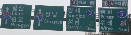도로마다 그 도로에 따른 번호가 있습니다. 3번국도 7번국도 88올림픽대로 등 들어보셧을겁니다. 88은 서울특별시도 제88호선 / 3번국도는 국도 3호선 표지판의 나온 100은 수도권제1순환고속도로인 고속국도 제100호선을 뜻합니다.