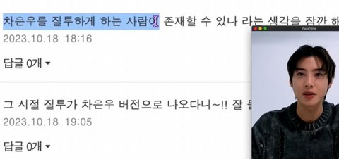 아니 차은우는 질투를 느끼긴 하나?ㅋㅋㅋㅋ
