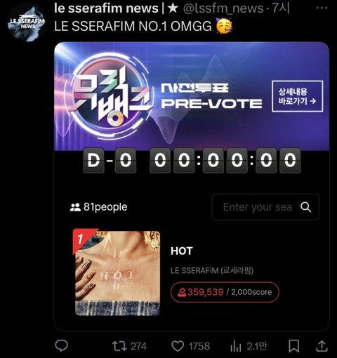 르세라핌 뮤뱅 1위