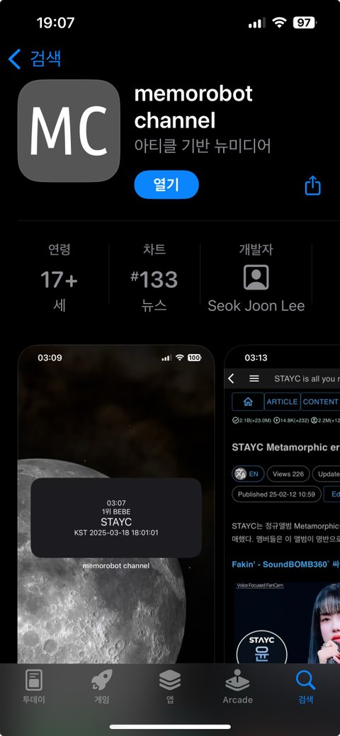 앱스토어 한국 뉴스분야 무료앱 133위알고있는 소수의 해외팬들 위주로 홍보했는데 뜬금 순위가 나와서 여기에도 써봄스테이씨 팬덤은 작지 않음 단지 진상들에게 가스라이팅을 많이 당할 뿐이지