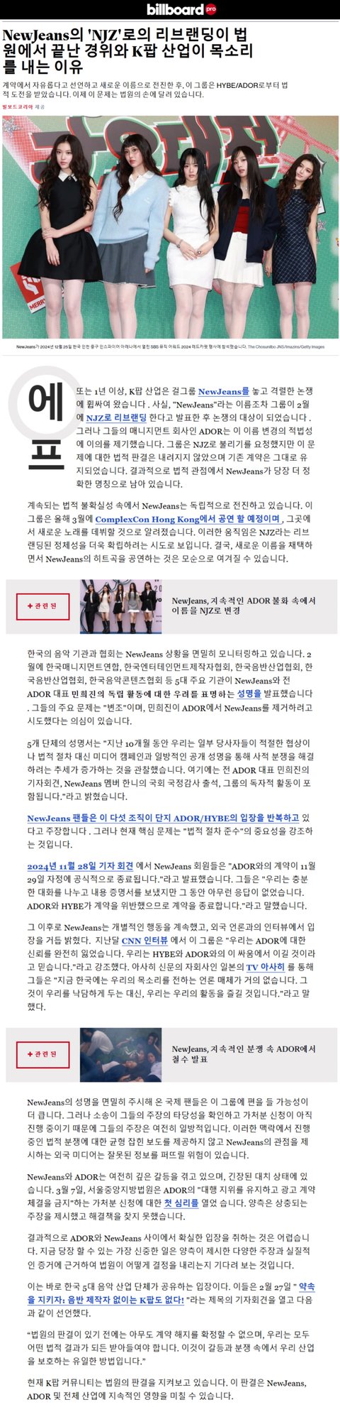 빌보드도 뉴진스 손절했네. 뉴진스 저격하는 기사냄
