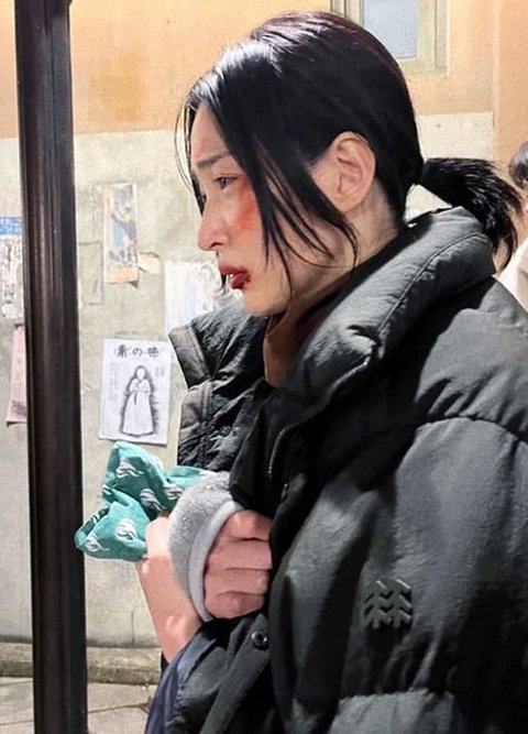 공개된 사진 속에는 작품 촬영 중인 율희의 모습이 담겼다. 화면 모니터링을 하고 있는 것으로 보이는 율희는 입가와 눈 주변에 상처 분장을 하고 있다.