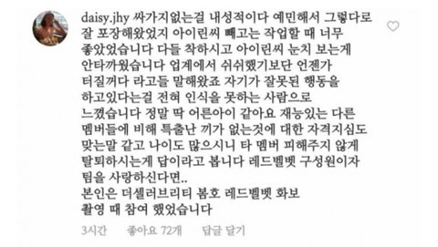 아이린은 모든 아이돌들이 다 하는 보정한 사진 올리면 또 정병들이 어떻게든 까내릴려고 보정했다고 ㅈㄹ할 거 생각해서 기사 사진으로 올리는 거 개웃프네ㅠㅋㅋㅋ 암튼 전성기때랑 다를게 없을 정도로 예쁨