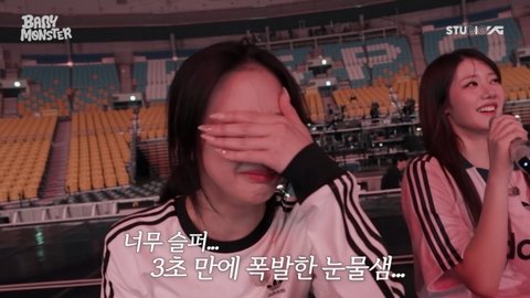 /사진 = YG엔터테인먼트안무 연습과 솔로 스테이지 준비 과정에서도 유쾌한 분위기가 가득했다. 멤버들은 프리 동작, 군무 체크, 제스처 개발 등 진지하게 임하는 동시에 솔로 무대에서는 서로가 서로의 관객이 되어 열띤 응원을 보내며 사기를 충전했다.최종 리허설을 위해 KSPO DOME에 들어선 베이비몬스터는 달라진 환경에 맞춰 꼼꼼한 준비에 나섰다. 돌출 무대부터 리프트 조율, 세트 활용 등 새롭게 경험하는 작업이 이어졌지만 양현석 총괄 프로듀서의 꼼꼼한 패드백을 완벽히 흡수하며 여유로운 무대 매너를 완성해 나갔다. 이어 이들은 과거 모습이 담긴 VCR을 보고 눈물을 쏟았다. 맏언니 루카의 눈물에 멤버들 역시 눈가가 촉촉해졌다.