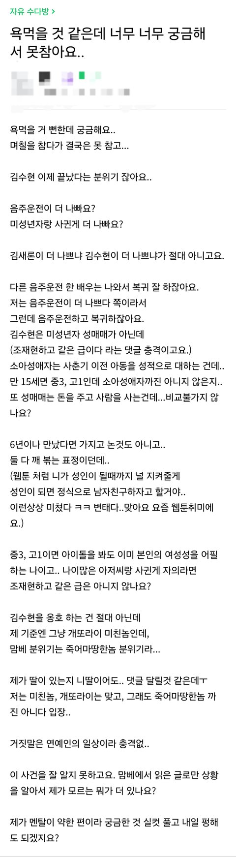 맘카페 정신나간 여편네의 김수현 옹호방식