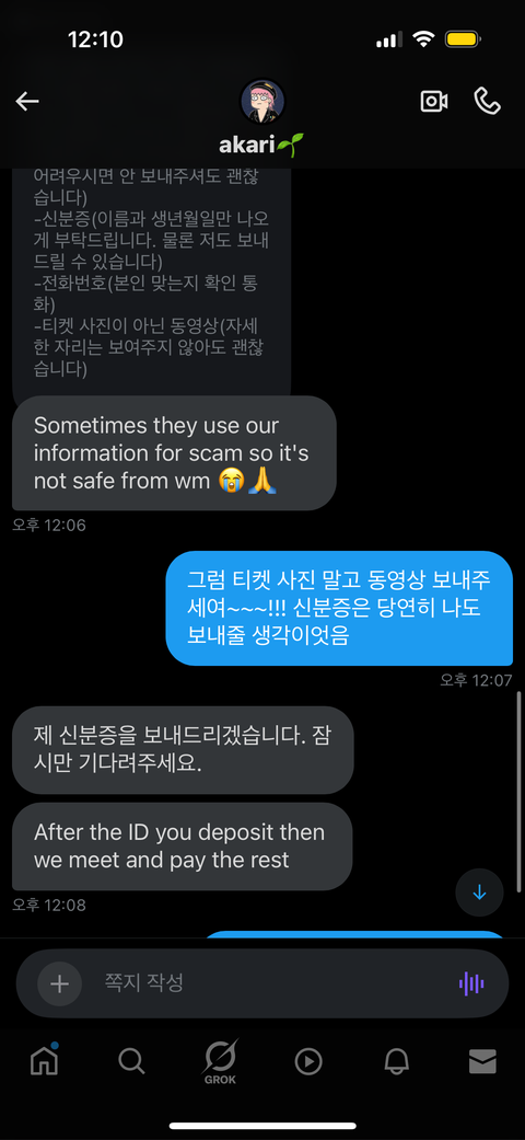 내가 저번달에 티켓 거래하다가 사가 당해서 ㅠㅠ