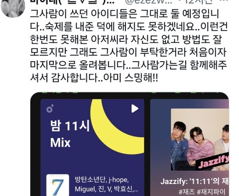 보니깐 바로 얼마전 호석이 콘에도 다녀오고 멤버들 누락이나 정정할 거 있으면 회사에 항의도 같이 하셨던 분임