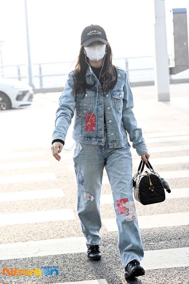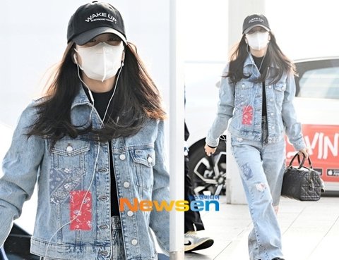 지수이날 지수는 청재킷에 청바지를 매치한 청청 패션을 선보였다. 지수는 검은색 캡모자와 하얀색 마스크로 얼굴을 꽁꽁 가렸음에도 느껴지는 독보적인 아우라를 자랑했다. 대세라고 불리는 줄이어폰을 착용한 모습도 시선을 끈다.