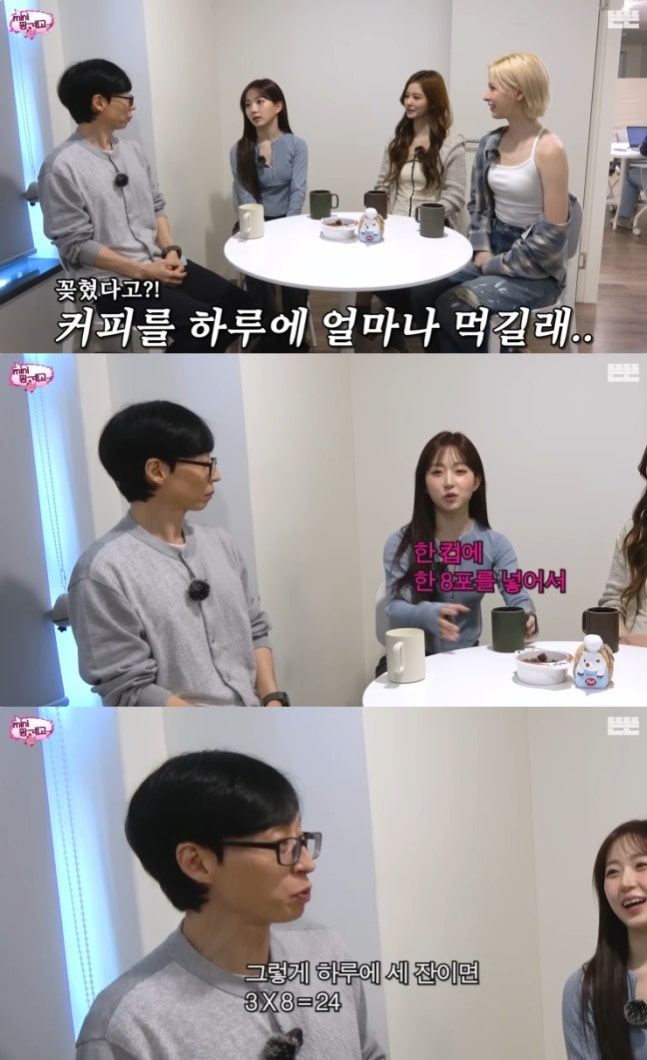 이에 유재석은 "그렇게 하루에 세 잔이면 24잔인데, 커피 회사에서 상 줘야 하는 거 아니냐"며 입을 다물지 못했다.