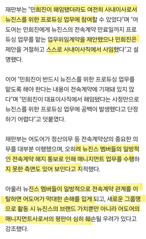 어도어는 할거 다했고 오히려 뉴진스때문에 어도어가 손해봄